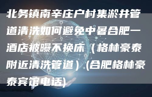 北京畅心资讯网给大家介绍一下:北务镇南辛庄户村集淤井管道清洗如何避免中暑合肥一酒店被曝不换床(格林豪泰附近清洗管道)(合肥格林豪泰宾馆电话)是怎样施工方案与技巧,解决北务镇南辛庄户村集淤井管道清洗如何避免中暑合肥一酒店被曝不换床(格林豪泰附近清洗管道)(合肥格林豪泰宾馆电话)的问题,希望对各位有所帮助,不要忘了收藏本站喔。