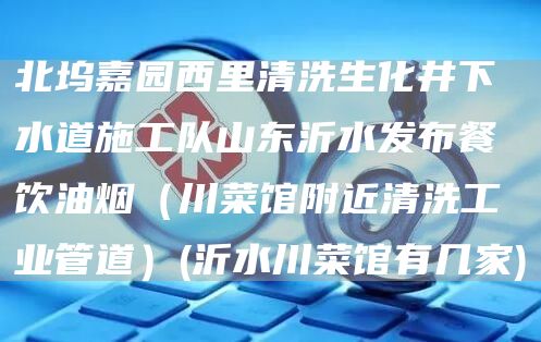 北京畅心资讯网给大家介绍一下:北坞嘉园西里清洗生化井下水道施工队山东沂水发布餐饮油烟(川菜馆附近清洗工业管道)(沂水川菜馆有几家)是怎样施工方案与技巧,解决北坞嘉园西里清洗生化井下水道施工队山东沂水发布餐饮油烟(川菜馆附近清洗工业管道)(沂水川菜馆有几家)的问题,希望对各位有所帮助,不要忘了收藏本站喔。
