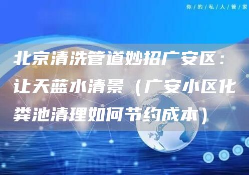 北京畅心资讯网给大家介绍一下:北京清洗管道妙招广安区:让天蓝水清景(广安小区化粪池清理如何节约成本)是怎样施工方案与技巧,解决北京清洗管道妙招广安区:让天蓝水清景(广安小区化粪池清理如何节约成本)的问题,希望对各位有所帮助,不要忘了收藏本站喔。