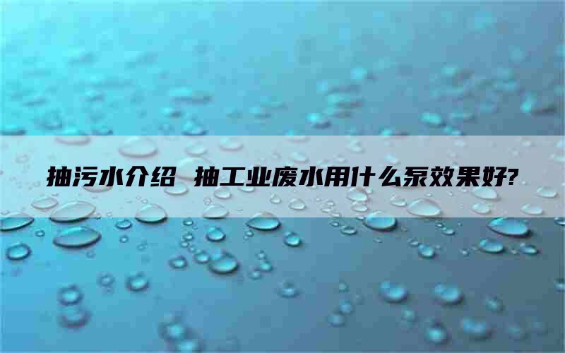 抽工业废水用什么泵效果好?