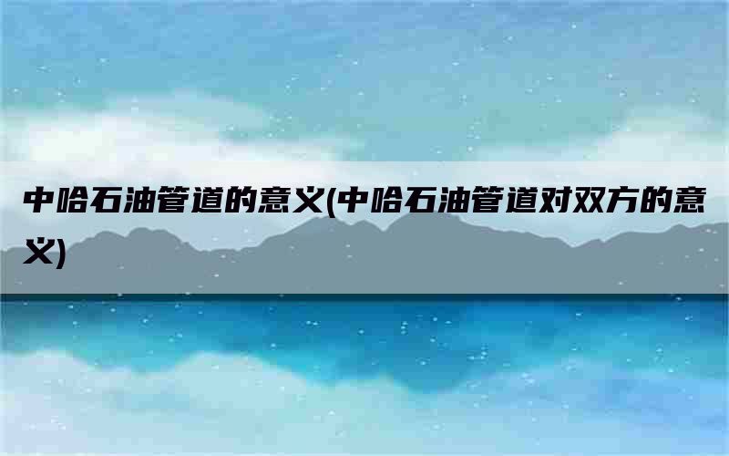 它的建成投产,标志着中哈两国在能源领域的合作进入了一个新的发展阶段,对促进中哈两国的经济发展具有重要意义。
