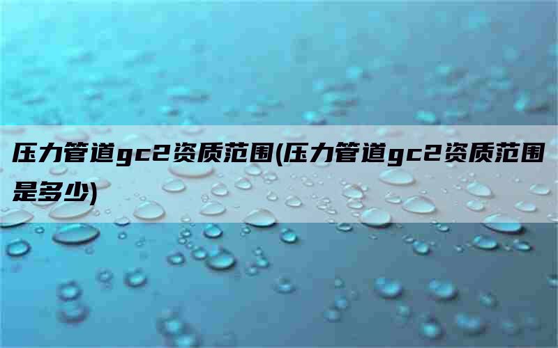 需要注意的是,GC2管道安装资质的承接范围可能会因地区和具体施工单位的资质限制而有所不同,所以在具体承接项目前需要咨询当地相关部门或专业机构以确保符合相关法规和资质要求。