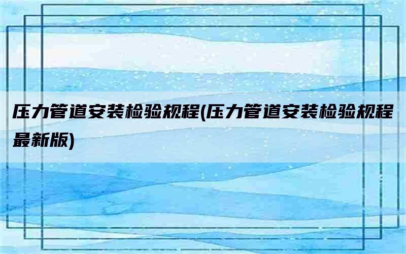 1、要试验的管道是否经检验验收合格;