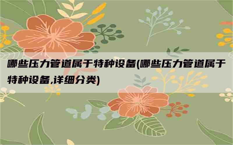 就是那些输送有毒有害、易燃易爆、高温高压的管道。低压,中压,高压一般按具体压力值来划分:低压管道 <1.6MPa;中压管道 1.6-6.4MPa;高压管道 -MPa;超高压管道 -MPa特高压管道 MPa以上。