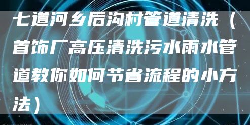 1、七道河乡后沟村管道清洗(首饰厂高压清洗污水雨水管道教你如何节省流程的小方法)