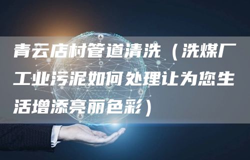 1、青云店村管道清洗(洗煤厂工业污泥如何处理让为您生活增添亮丽色彩)