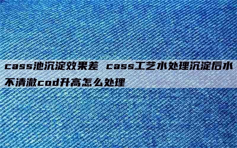 cass工艺水处理沉淀后水不清澈cod升高怎么处理