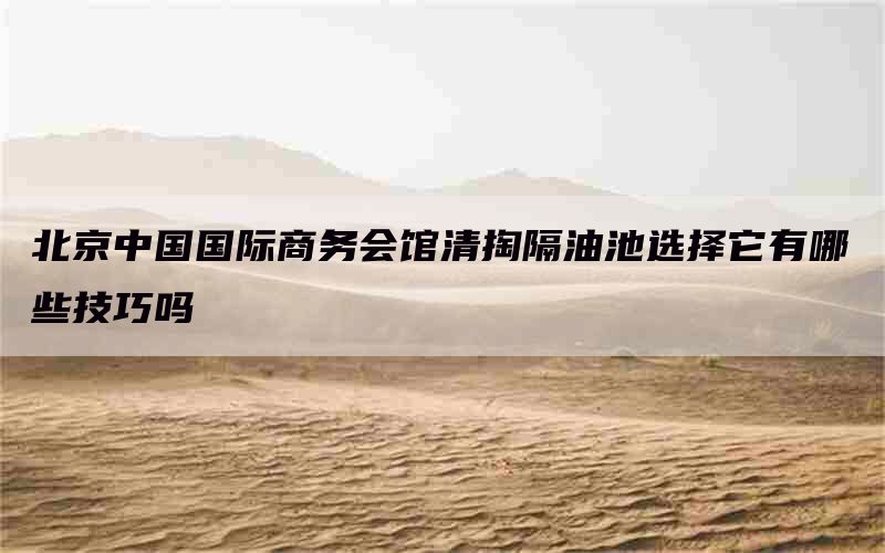 根据北京中国国际商务会馆清掏隔油池的特点和需求,选择合适的隔油池可以提高工作效率和环境保护效果。