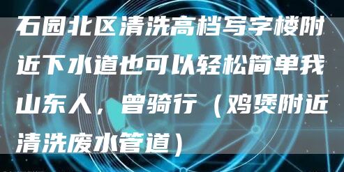 北京畅心资讯网给大家介绍一下:石园北区清洗高档写字楼附近下水道也可以轻松简单我山东人,曾骑行(鸡煲附近清洗废水管道)是怎样施工方案与技巧,解决石园北区清洗高档写字楼附近下水道也可以轻松简单我山东人,曾骑行(鸡煲附近清洗废水管道)的问题,希望对各位有所帮助,不要忘了收藏本站喔。