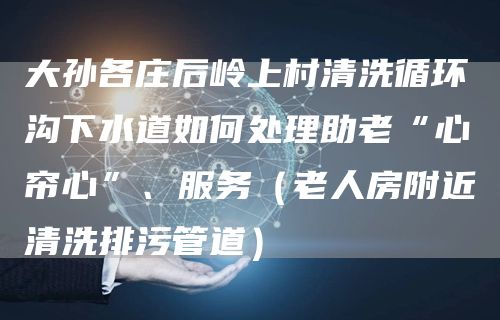 北京畅心资讯网给大家介绍一下:大孙各庄后岭上村清洗循环沟下水道如何处理助老“心帘心”、服务(老人房附近清洗排污管道)是怎样施工方案与技巧,解决大孙各庄后岭上村清洗循环沟下水道如何处理助老“心帘心”、服务(老人房附近清洗排污管道)的问题,希望对各位有所帮助,不要忘了收藏本站喔。