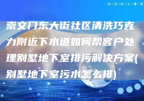北京畅心资讯网给大家介绍一下:崇文门东大街社区清洗巧克力附近下水道如何帮客户处理别墅地下室排污解决方案(别墅地下室污水怎么排)是怎样施工方案与技巧,解决崇文门东大街社区清洗巧克力附近下水道如何帮客户处理别墅地下室排污解决方案(别墅地下室污水怎么排)的问题,希望对各位有所帮助,不要忘了收藏本站喔。