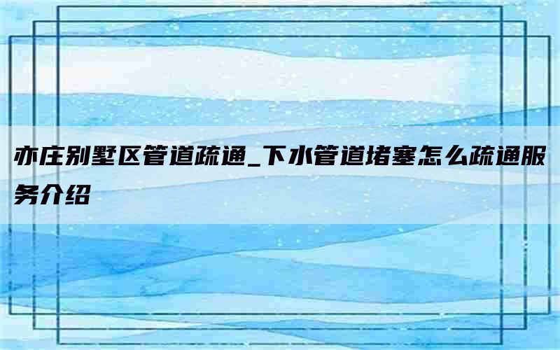 综上所述,亦庄别墅区管道疏通对居民生活质量至关重要。了解下水管道堵塞原因、传统方法和高科技设备的应用,选择合适的疏通服务公司,将帮助居民解决管道堵塞问题,保证正常生活的进行。