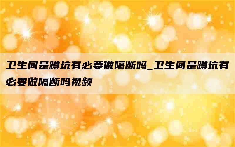 卫生间是蹲坑有必要做隔断吗_卫生间是蹲坑有必要做隔断吗视频