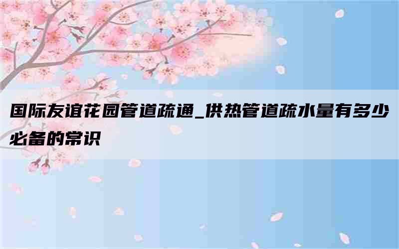管道疏通在国际友谊花园的维护中扮演着至关重要的角色。保持供热管道畅通,确保热水和暖气能正常供应给游客和工作人员,是提供舒适环境的基础。然而,很多人对于管道疏通的必备常识并不了解。下面将介绍一些关于供热管道疏水量以及其他相关话题的知识。