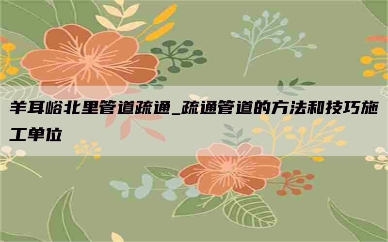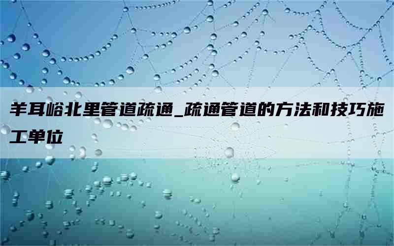 管道堵塞一直是居民们头疼的问题之一,而位于羊耳峪北里的小区也不例外。为了解决这个问题,施工单位采取了一系列有效的方法和技巧来进行管道疏通。