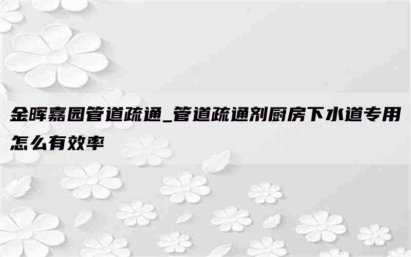 1. 高效快速:金晖嘉园通过其特殊配方能够迅速溶解厨房下水道中的油脂和其他障碍物,从而高效疏通管道。