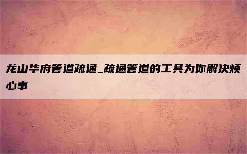 当你遇到管道堵塞问题时,请记得找到龙山华府管道疏通服务。他们将用专业技术、高效手段解决你的烦心事,并确保你能够享受畅快无忧的生活或工作环境。
