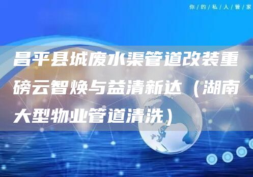 色的连锁服务体系,全力服务于社会,为客户打造一个绿色健康、环保节能的家电使用环境。一个干净卫生、舒适温馨的家庭环境。北京畅心资讯网常见普遍的昌平县城废水渠管道改装重磅云智焕与益清新达(湖南大型物业管道清洗)?就是以上全部内容了,客户不用动手只要让公司对整体规划全部步骤。全过程都与客户及时沟通核对情况。不论大家选择哪种昌平县城废水渠管道改装重磅云智焕与益清新达(湖南大型物业管道清洗)方式都是希望搬迁能够顺顺利利,所以挑选适合自己的才是的。