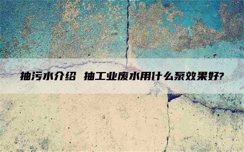 抽工业废水用什么泵效果好?