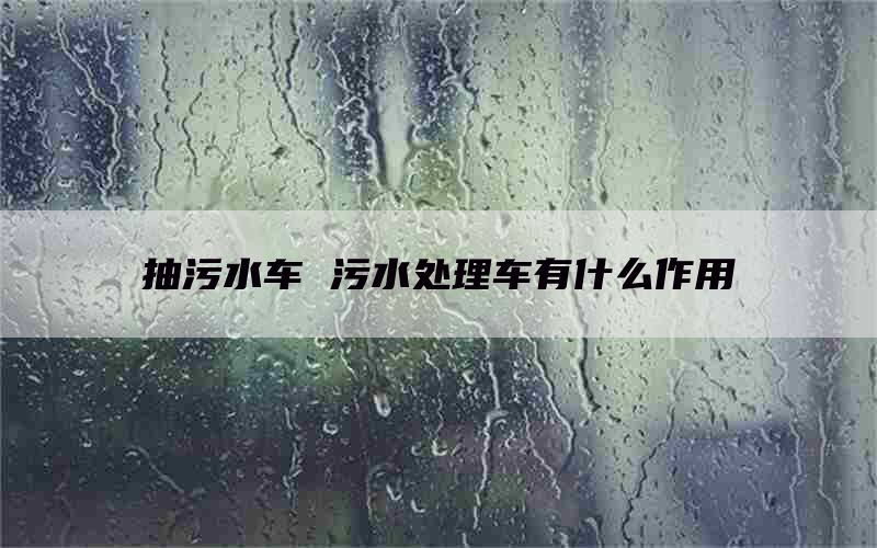 污水处理车有什么作用