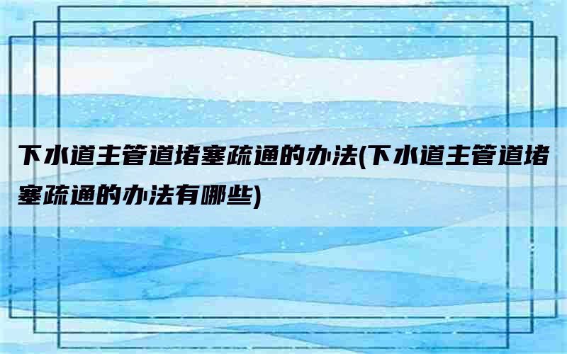 "下水道疏通横管道的方法有几种。以下是一些常见的方法: