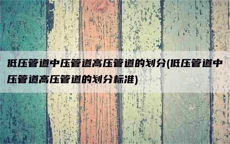 低压、中压、高压管道是怎样划分的?