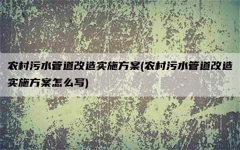 为改善农村环境,防止污水外排污染地下水和土壤,需要改造农村下水道