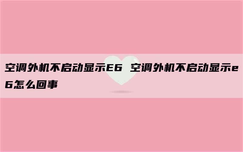 关于空调外机不启动显示E6_空调外机不启动显示e6怎么回事的介绍到此就结束了,不知道你从中找到你需要的信息了吗 ?如果你还想了解更多这方面的信息,记得收藏关注本站。
