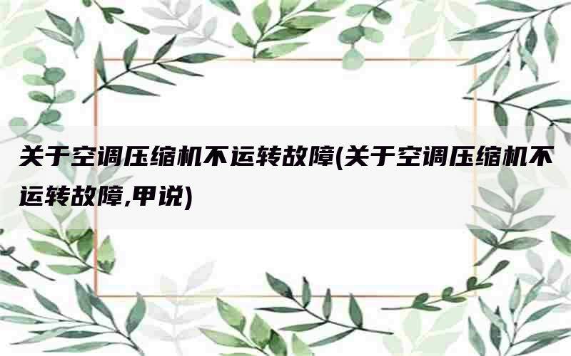 而你的空调压缩机不工作,也可能是因没有制冷剂的原因,或者是你的空调压缩机的电气的原因引起的