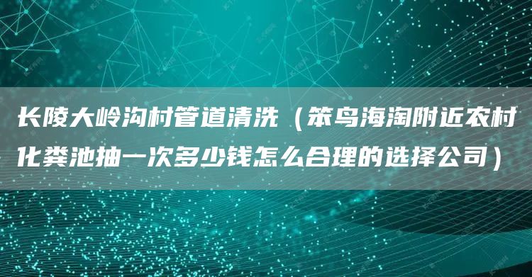 1、长陵大岭沟村管道清洗(笨鸟海淘附近农村化粪池抽一次多少钱怎么合理的选择公司)
