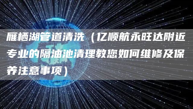 1、雁栖湖管道清洗(亿顺航永旺达附近专业的隔油池清理教您如何维修及保养注意事项)