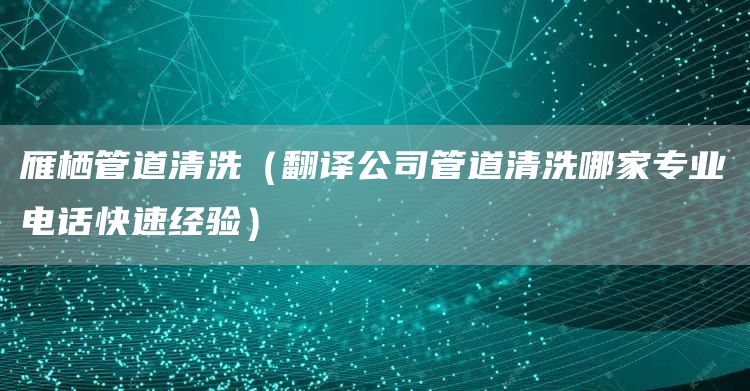 1、雁栖管道清洗(翻译公司管道清洗哪家专业电话快速经验)