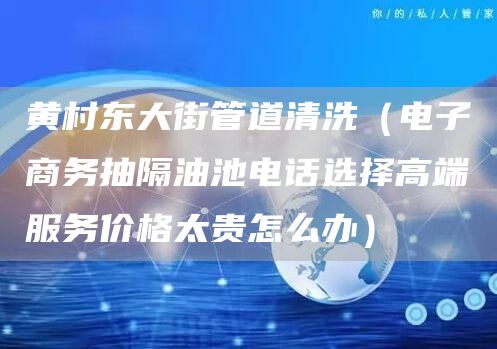 1、黄村东大街管道清洗(电子商务抽隔油池电话选择高端服务价格太贵怎么办)