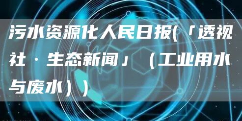 污水资源化人民日报(「透视社·生态新闻」(工业用水与废水))