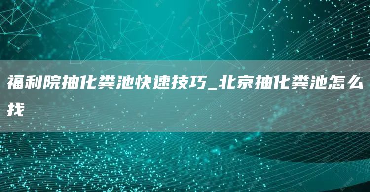 十二、福利院抽化粪池快速技巧_北京抽化粪池怎么找