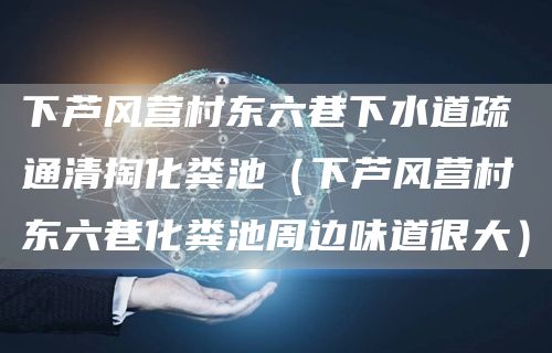 1、下芦风营村东六巷下水道疏通清掏化粪池(下芦风营村东六巷化粪池周边味道很大)