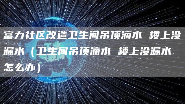 以上就是俊星环保对于富力社区改造卫生间吊顶滴水 楼上没漏水(卫生间吊顶滴水 楼上没漏水怎么办)问题和相关问题的解答了,希望能给你带来有用的帮助,如臭水沟清淤果还有不明白的地方,可以24小时打电话来咨询!