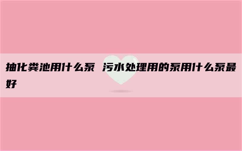 单位自建化粪池抽水用哪种泵好?