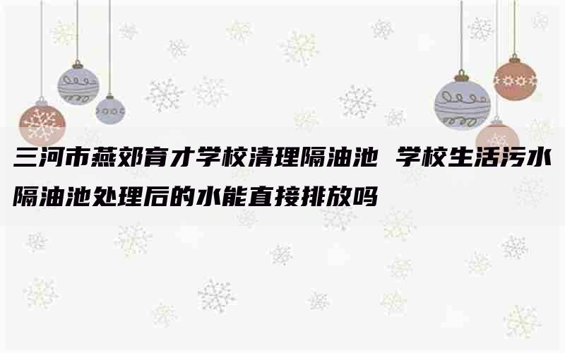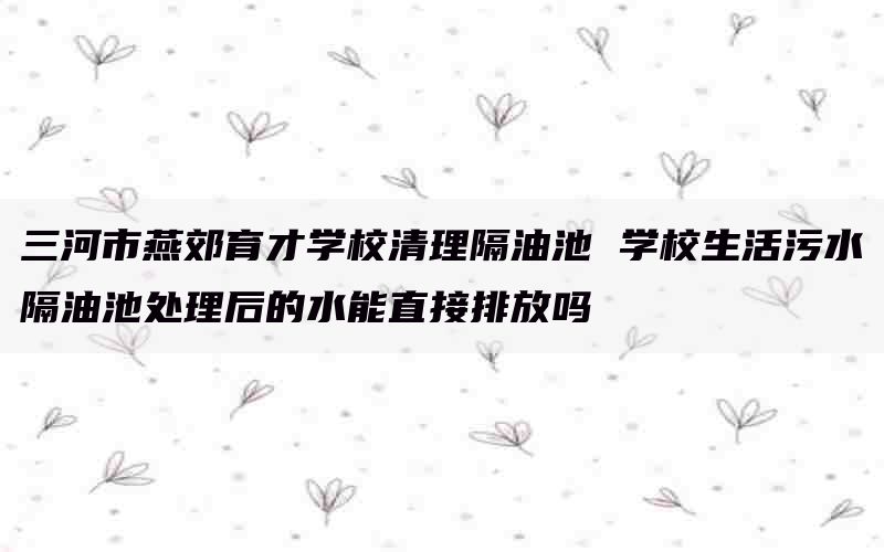 学校生活污水经过隔油池处理后的水不能直接排放。为了保护环境和人类健康,学校应采取进一步的处理方法对废水进行降解和去除有害物质。常见的处理方法包括生物处理、化学处理和物理-化学综合处理等。通过这些方法可以有效去除废水中的有机物、微生物等致病菌以及其他有害成分,并达到国家规定的直接排放标准。