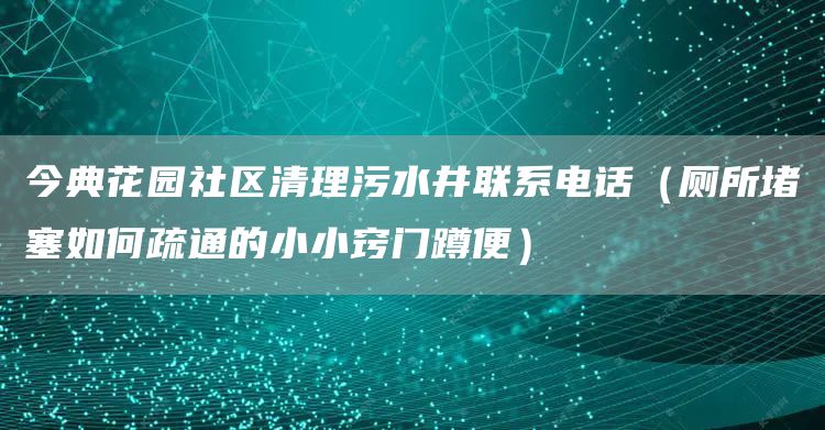 以上就是小编对于今典花园社区清理污水井联系电话(厕所堵塞如何疏通的小小窍门蹲便)问题和相关问题的解答了,希望能给你带来有用的帮助,如果还有不明白的地方,可以24小时打电话来咨询!
