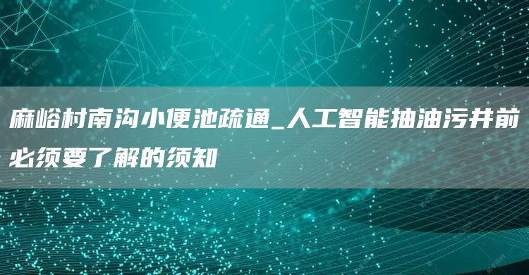 1、麻峪村南沟小便池疏通_人工智能抽油污井前必须要了解的须知