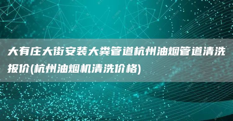 杭州油烟管道清洗报价(杭州油烟机清洗价格)