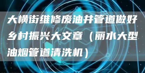 做好乡村振兴大文章(丽水大型油烟管道清洗机)