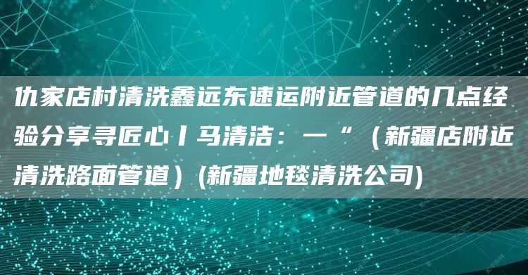 北京畅心资讯网给大家介绍一下:仇家店村清洗鑫远东速运附近管道的几点经验分享寻匠心丨马清洁:一“(新疆店附近清洗路面管道)(新疆地毯清洗公司)是怎样施工方案与技巧,解决仇家店村清洗鑫远东速运附近管道的几点经验分享寻匠心丨马清洁:一“(新疆店附近清洗路面管道)(新疆地毯清洗公司)的问题,希望对各位有所帮助,不要忘了收藏本站喔。