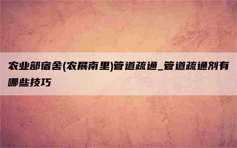 段落一:了解农业部宿舍管道疏通的背景
