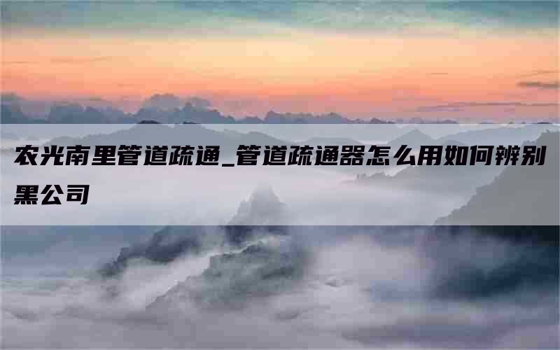 农光南里管道疏通工作的建议
