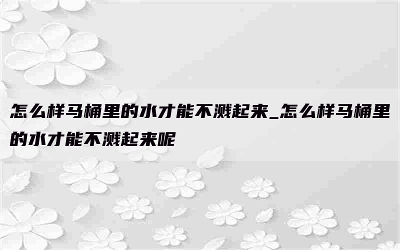 通常情况下,如果你想要在上厕所的时候不让小便溅出来,那么这个时候你可以离马桶近一点,找准位置,这样就降低了小便溅出来的风险