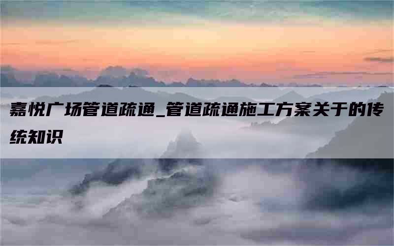在现代社会中,管道疏通已经成为一个常见而重要的问题。嘉悦广场作为一座大型商业综合体,每天都有大量的人流和物流通过其管道系统。因此,了解并运用传统知识来进行管道疏通施工是非常必要的。