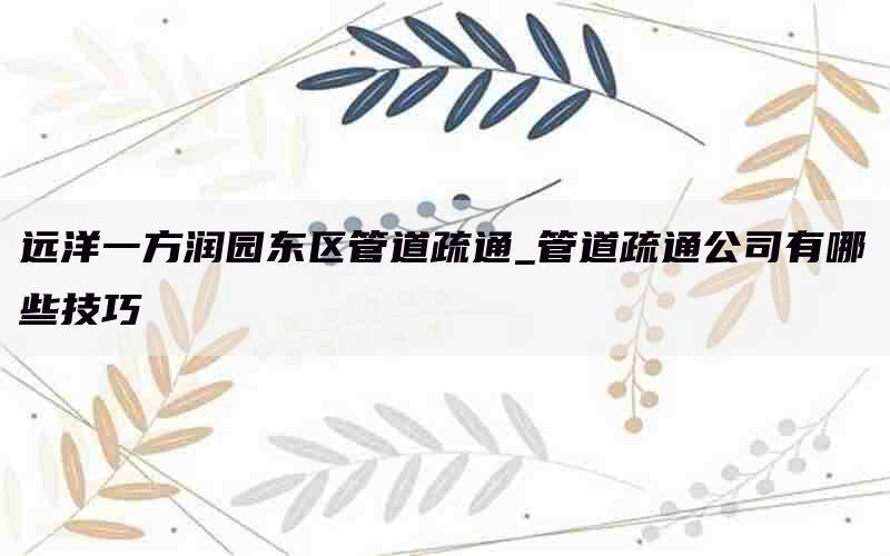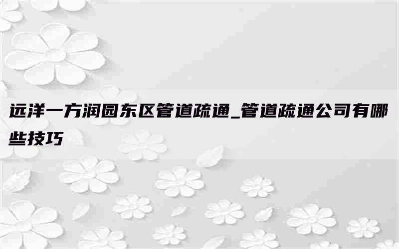 管道疏通公司有哪些技巧?下面为您介绍几种常用的技巧。