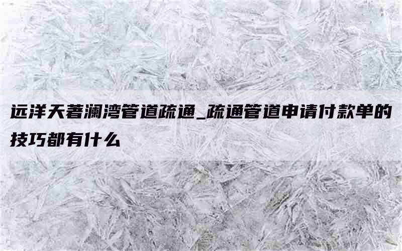 远洋天著澜湾为顾客提供了快捷方便的管道疏通申请流程。下面将介绍一些申请付款单的技巧,以帮助您更好地处理相关事务。